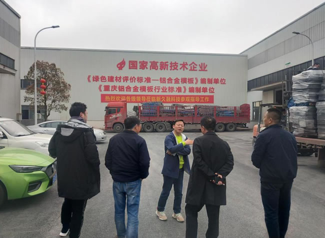 2023年5月17日,重慶市房地產協會副會長兼秘書長王芳、潼南區房地產協會會長吳長齡帶領團隊蒞臨新久融考察調研新形勢下鋁合金模板研產企業在房地產產業鏈中的作用與現狀。董